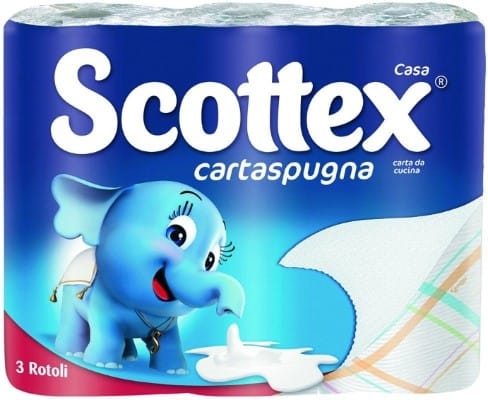 Kimberly-Clark’s Scottex brand is used for toilet paper – it’s a cousin of the Cottonelle and Andrex used in other countries, even using the same picture of a labrador – but there’s also Scottex kitchen paper, whose mascot is an even less realistic picture of an elephant: